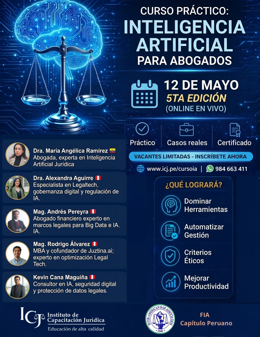 • Mag. Andrés Pereyra Osores: Especialista en Inteligencia Artificial Jurídica y Derecho Corporativo.